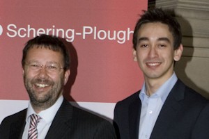 化学家获得了价值30,000英镑的高额奖学金 来自曼彻斯特大学的化学研究生获得了一项备受赞誉的奖学金。托姆·贝克,有机化学组的博士生,获得了一项由Schering-Plough药廠授予的博士后奖学金,将与美国斯克里普斯研究所的尼古劳教授一起工作。该奖学金提供每年5万美元(3万英镑)的津贴,可续签第二年。这是英国有机化学博士生仅有的一项奖项。托姆将致力于合成预期具有重要抗癌性质的presporolide。左图为Schering-Plough的苏格兰研究设施在格拉斯哥附近的纽豪斯的法国希尔博士与托姆的合影。Schering-Plough公司支持享有国际声誉的博士后研究奖学金计划,拥有25名博士后研究员。自1981年成立以来,该计划已培养了400多名博士后研究员。编辑提示:有关更多信息,请联系亚历克斯·沃丁顿,电话0161 275 8387或07717 881569。有关Schering-Plough博士后奖学金的更多信息,请参阅http://www.schering-plough.com/biopharma/post-doctoral-program.aspx”